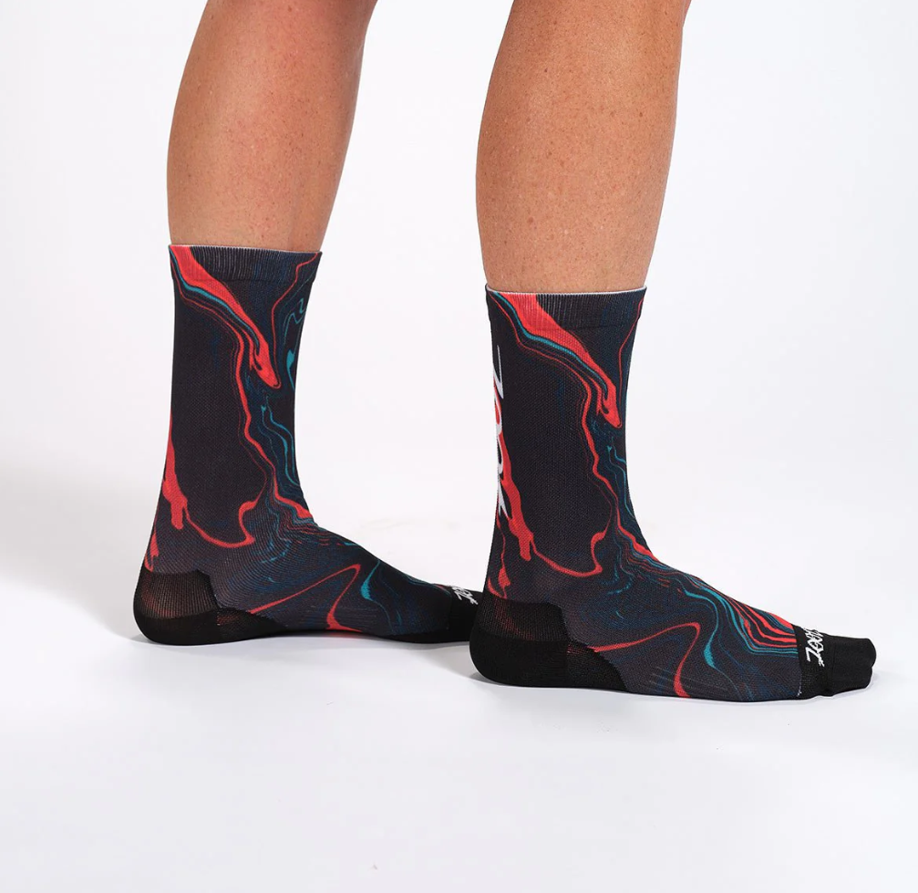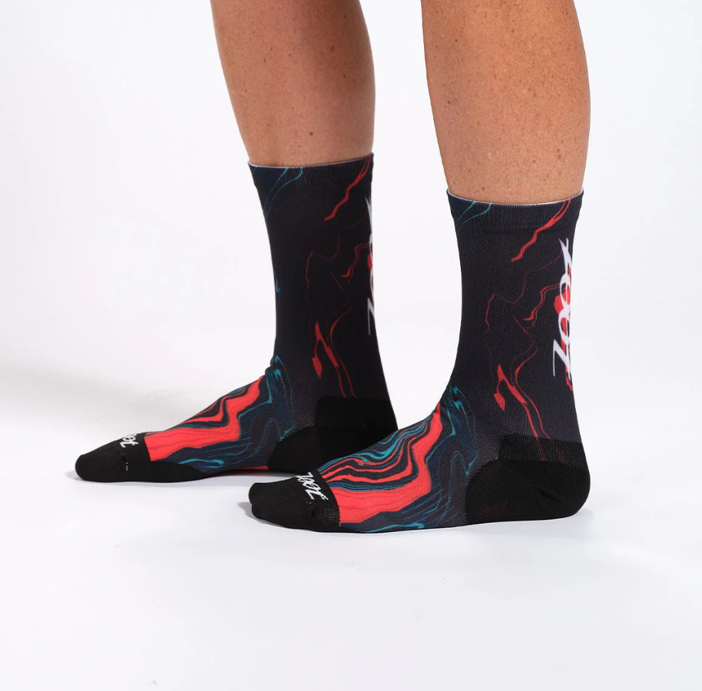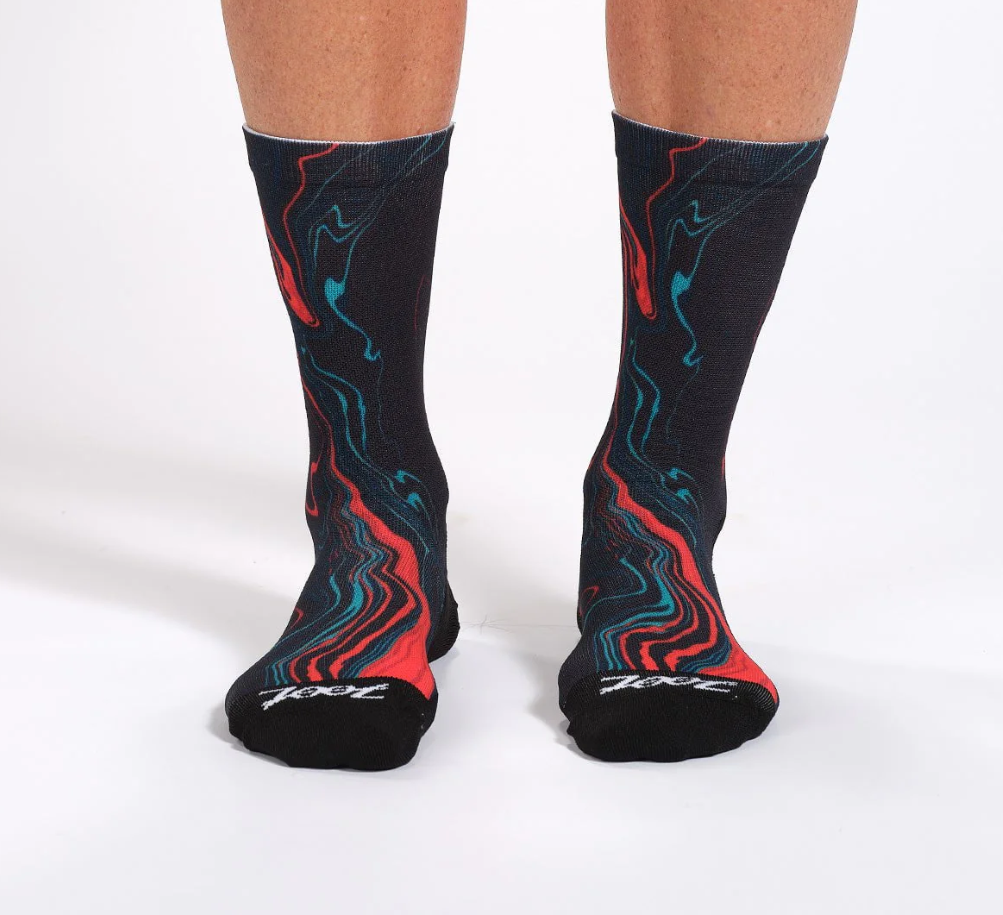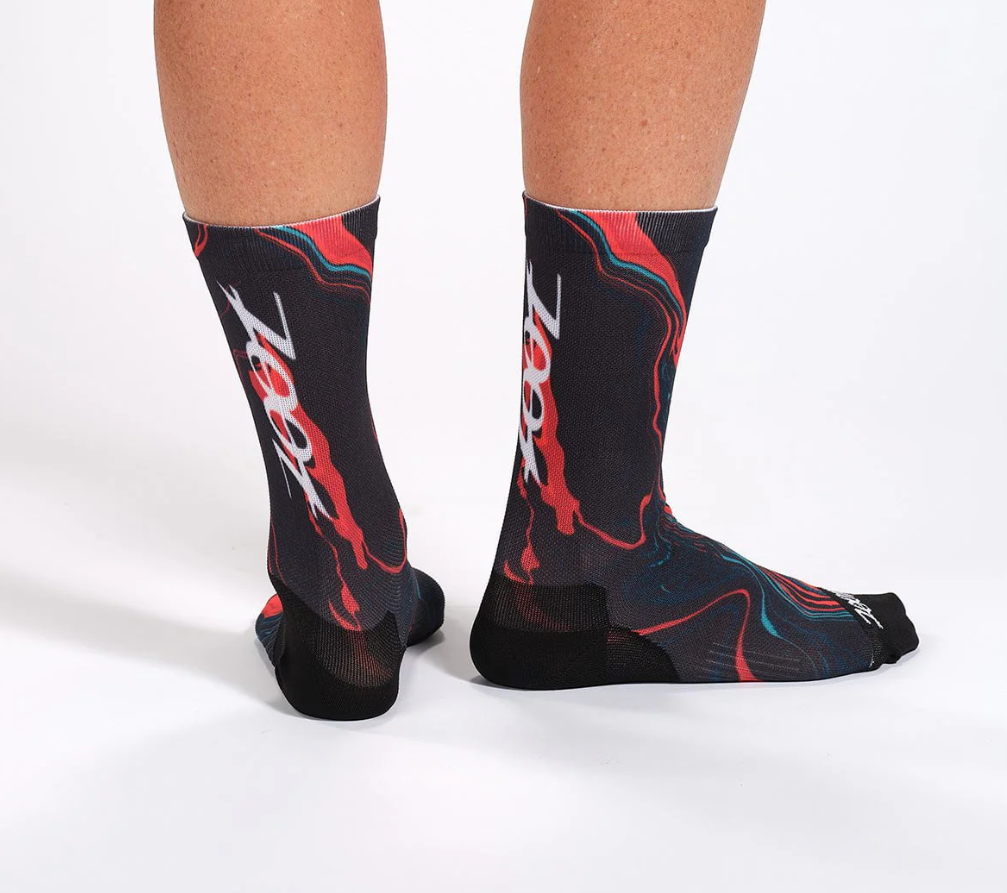 Вы обязательно захотите надеть велосипедные носки Zoot для самых сложных поездок. Благодаря дышащей тонкой амортизирующей конструкции, обеспечивающей комфорт вашим ногам, носки Zoot высотой 15 см (6 дюймов) станут ярким акцентом вашего образа! Встроенная компрессионная вставка в средней части стопы обеспечивает плотное и стабильное прилегание. Усиленные амортизирующие зоны в области пятки и носка гарантируют максимальный комфорт и долговечность. Эти носки отличаются уникальным дизайном и забавными узорами, которые идеально подойдут к вашей экипировке, и вы не захотите снимать их во время тренировки.