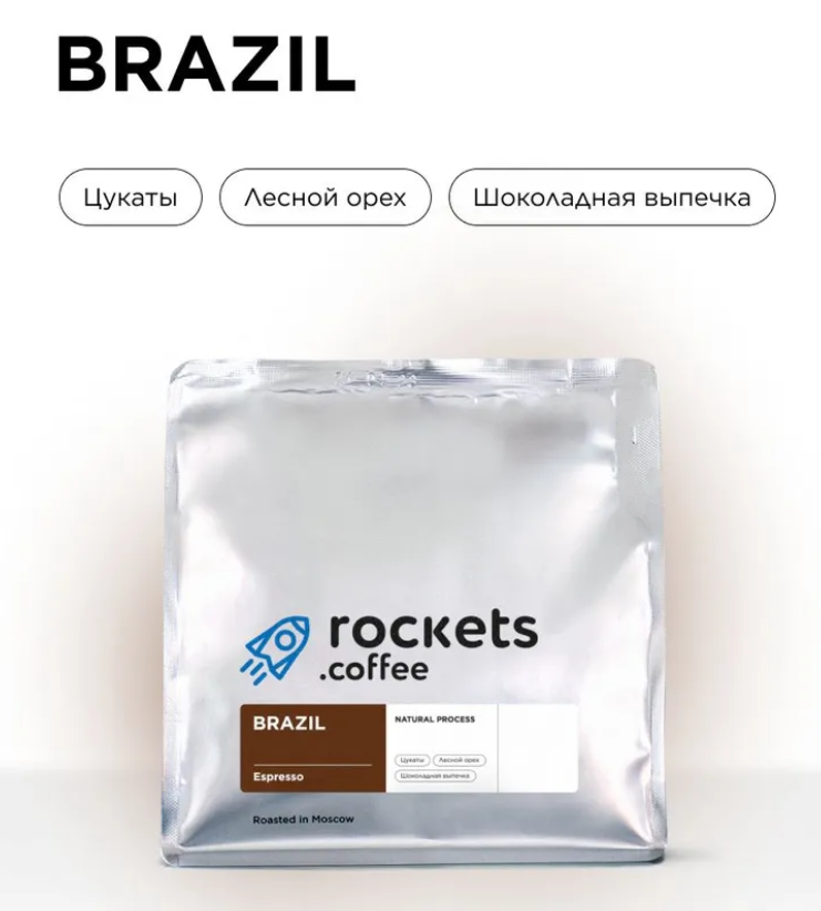 Кофе в зёрнах Espresso Brazil 100% арабика. Сладкий кофе с плотным телом и читаемым букетом. Идеален с молоком